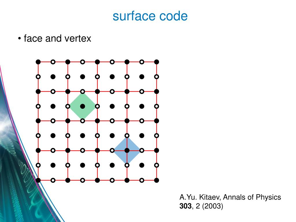 surface code • face and vertex A.Yu. Kitaev, Annals of Physics 303, 2 (2003)