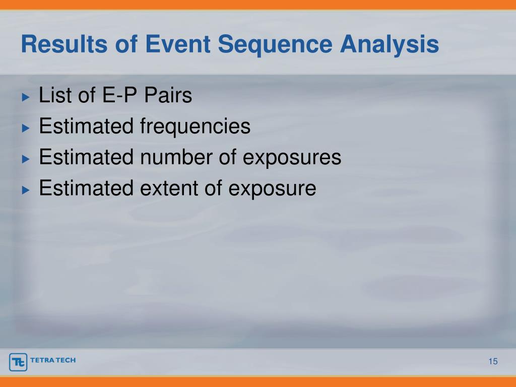 Results of Event Sequence Analysis • List of E-P Pairs • Estimated frequencies • Estimated number of exposures • Estimated extent of exposure