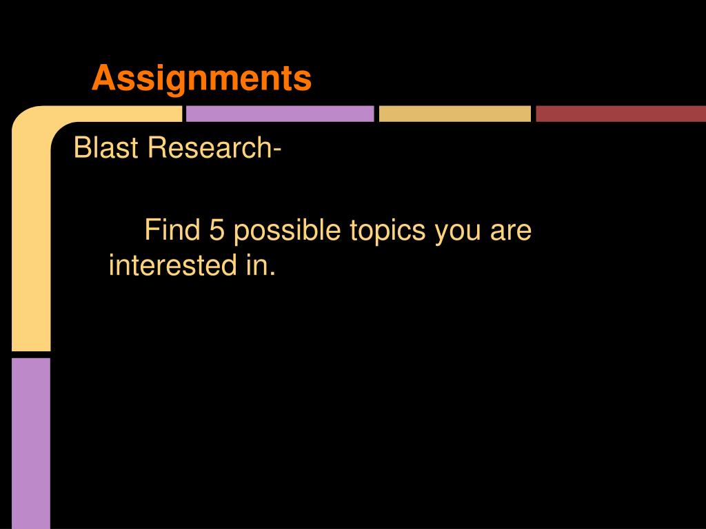 Assignments Blast Research- Find 5 possible topics you are interested in.