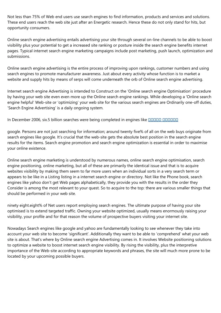 Not less than 75% of Web end users use search engines to find information, products and services and solutions. These end users reach the web site just after an Energetic research. Hence these do not only stand for hits, but opportunity consumers. Online search engine advertising entails advertising your site through several on-line channels to be able to boost visibility plus your potential to get a increased site ranking or posture inside the search engine benefits internet pages. Typical internet search engine marketing campaigns include post marketing, push launch, optimization and submissions. Online search engine advertising is the entire process of improving upon rankings, customer numbers and using search engines to promote manufacturer awareness. Just about every activity whose function is to market a website and supply hits by means of serps will come underneath the orb of Online search engine advertising. Internet search engine Advertising is intended to Construct on the ‘Online search engine Optimisation’ procedure by having your web site even even more up the Online search engine rankings. While developing a ‘Online search engine helpful’ Web-site or ‘optimizing’ your web site for the various search engines are Ordinarily one-off duties, ‘Search Engine Advertising’ is a daily ongoing system. In December 2006, six.5 billion searches were being completed in engines like נננננ ננננננ google. Persons are not just searching for information; around twenty five% of all on the web buys originate from search engines like google. It’s crucial that the web-site gets the absolute best position in the search engine results for the items. Search engine promotion and search engine optimization is essential in order to maximise your online existence. Online search engine marketing is understood by numerous names, online search engine optimisation, search engine positioning, online marketing, but all of these are primarily the identical issue and that is to acquire websites visibility by making them seem to far more users when an individual sorts in a very search term or appears to be like in a Listing listing in a internet search engine or directory. Not like the Phone book, search engines like yahoo don’t get Web pages alphabetically, they provide you with the results in the order they Consider is among the most relevant to your quest. So to acquire to the top: there are various smaller things that should be performed in your web site. ninety eight.eight% of Net users report employing search engines. The ultimate purpose of having your site optimised is to extend targeted traffic. Owning your website optimized, usually means enormously raising your visibility, your profile and for that reason the volume of prospective buyers visiting your internet site. Nowadays Search engines like google and yahoo are fundamentally looking to see whenever they take into account your web site to become ‘significant’. Additionally they want to be able to ‘comprehend’ what your web site is about. That’s where by Online search engine Advertising comes in. It involves Website positioning solutions to optimize a website to boost internet search engine visibility. By rising the visibility, plus the interpretive importance of the Web-site according to appropriate keywords and phrases, the site will much more prone to be located by your upcoming possible buyers.