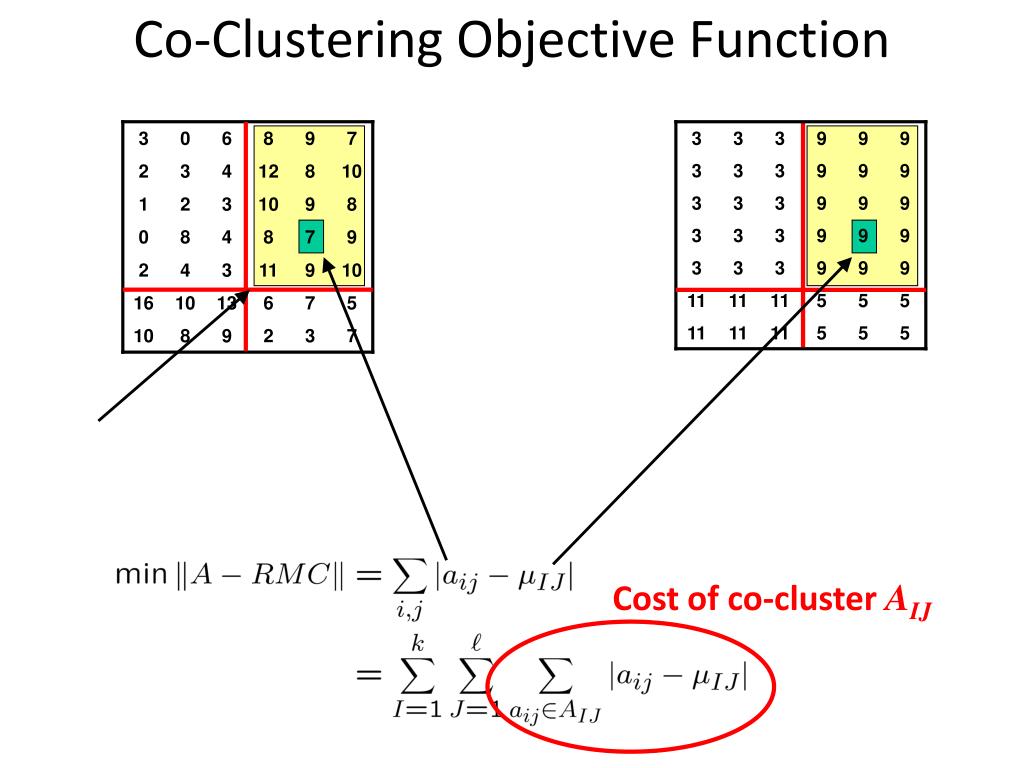 Co-Clustering Objective Function A R M C AIJ Cost of co-cluster AIJ