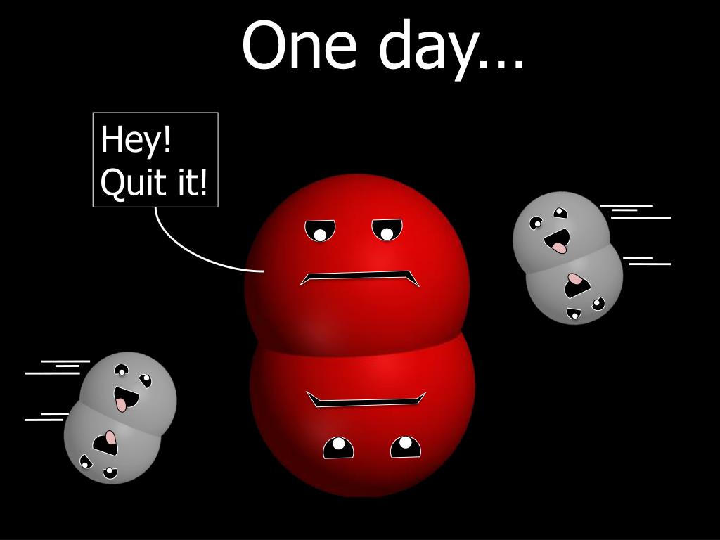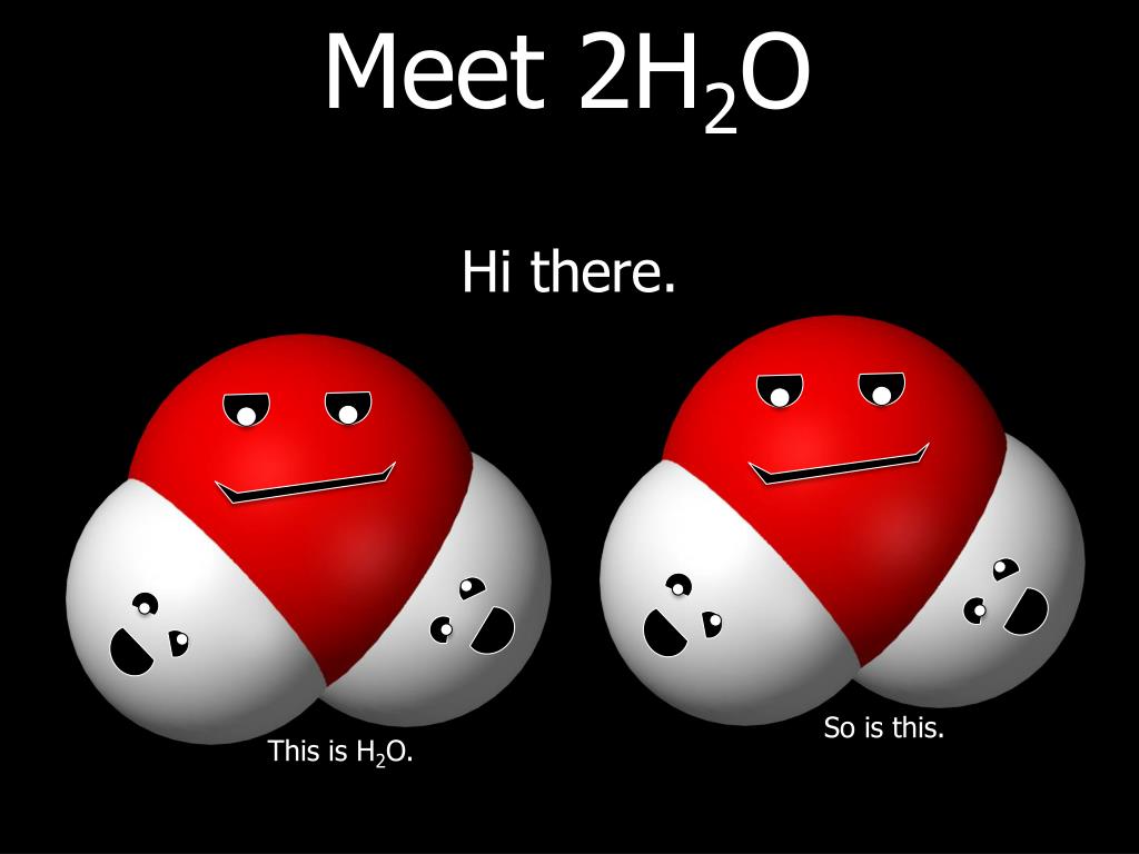 Chemical Reactions. The story. Meet 2H 2 O. Hi there. So is this. This is H 2 O. They weren’t always so happy. Hmph. You’re out of control. Bbbllgghh!!. Meet O 2. You need me. I’m important. Meet H 2. He’s light. He’s fast. He’s crazy!. B-b-b-b-b. One day…. Hey! Quit it!.