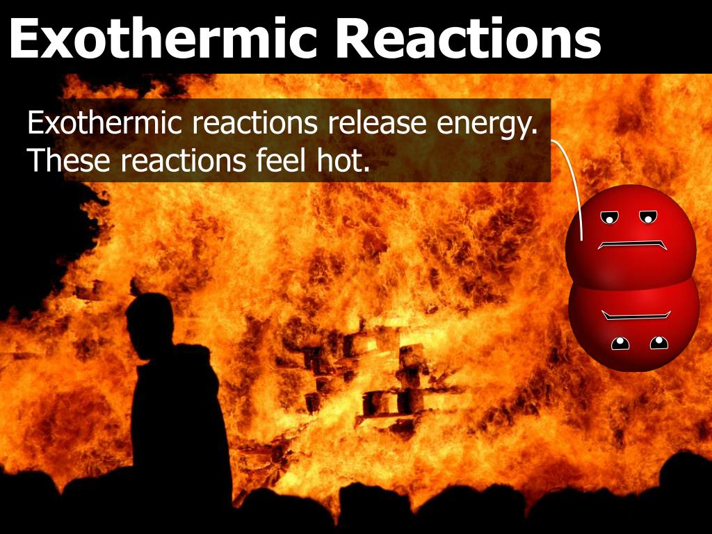 Exothermic Reactions Exothermic reactions release energy. These reactions feel hot.
