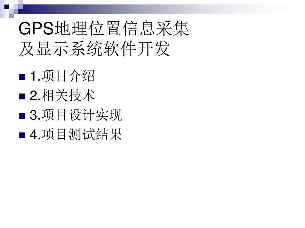GPS地理位置信息采集及显示系统软件开发 • 1.项目介绍 • 2.相关技术 • 3.项目设计实现 • 4.项目测试结果