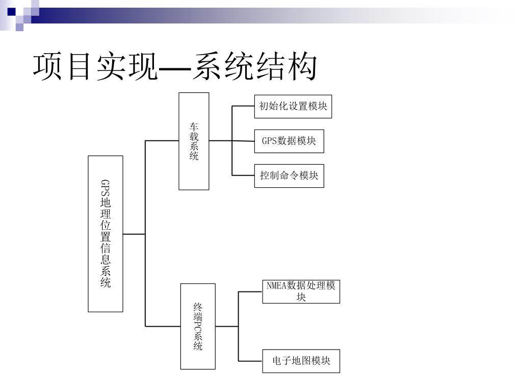 项目实现 • 系统结构 • 各部分实现 • Petalinux安装 • 测地系初始化 • GPS数据接收和发送 • NMEA数据校验和解析 • 地图操作