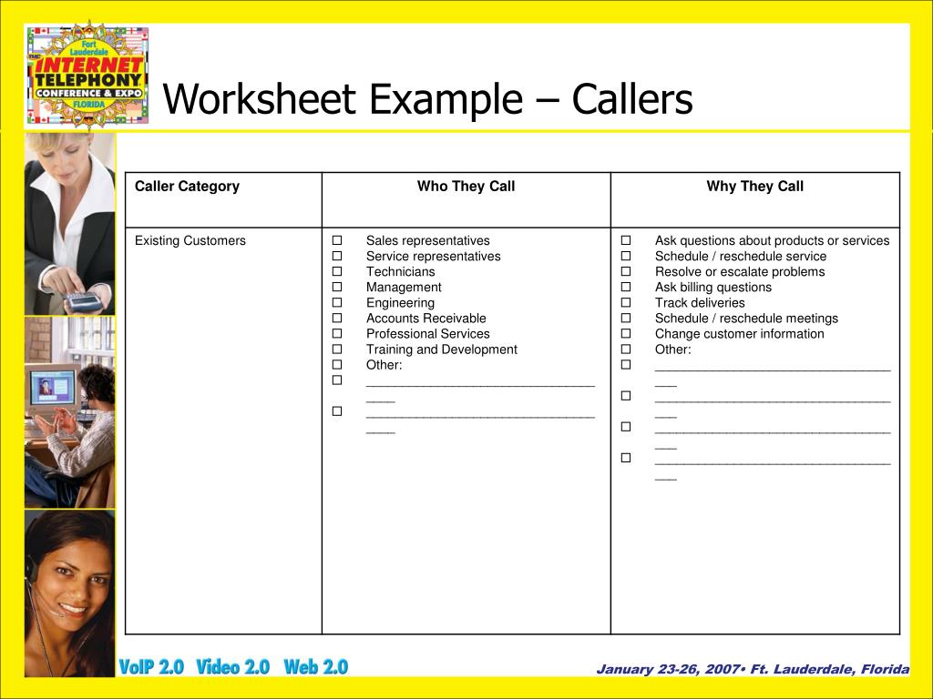 2. Identify Customer and Users • Sort out the various customers (external) and users (internal) to identify the specific communication needs of each group. • Customers: Who is calling, messaging, IMing? What is their objective for various contact types? • Users: Apply the “Rule of Hand” • The top 5 types of jobs represent 80% of workforce/payroll • For each of those top 5 job types, create a profile of their communication patterns and the objectives for those communication activities. • These will be the basis for steps 3, 4, and 5