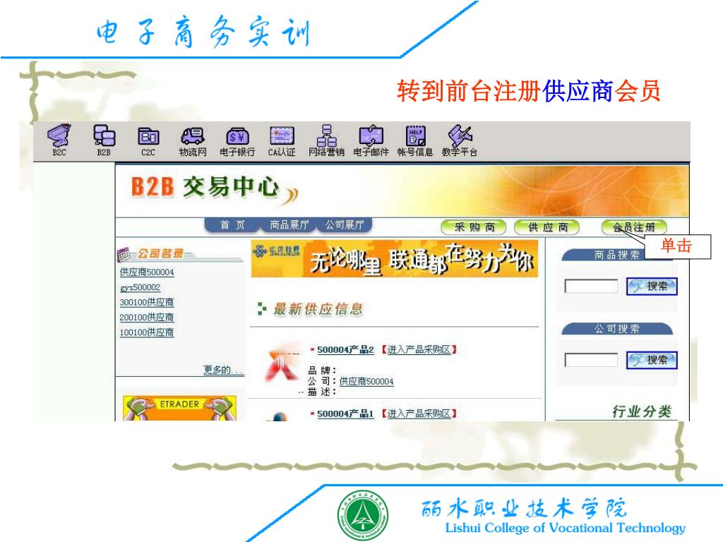 转到前台注册供应商会员 单击
