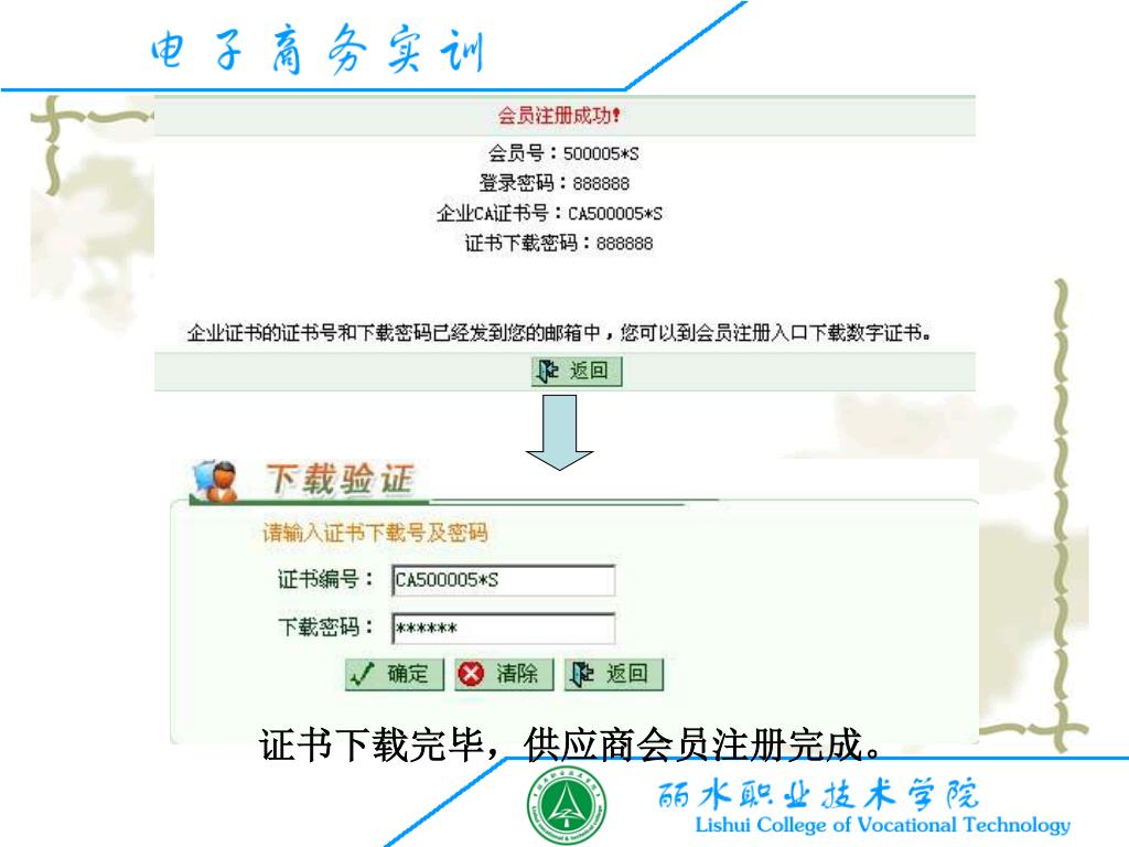 单击 下载CA证书后,采购商会员注册完成,可转到前台登陆。