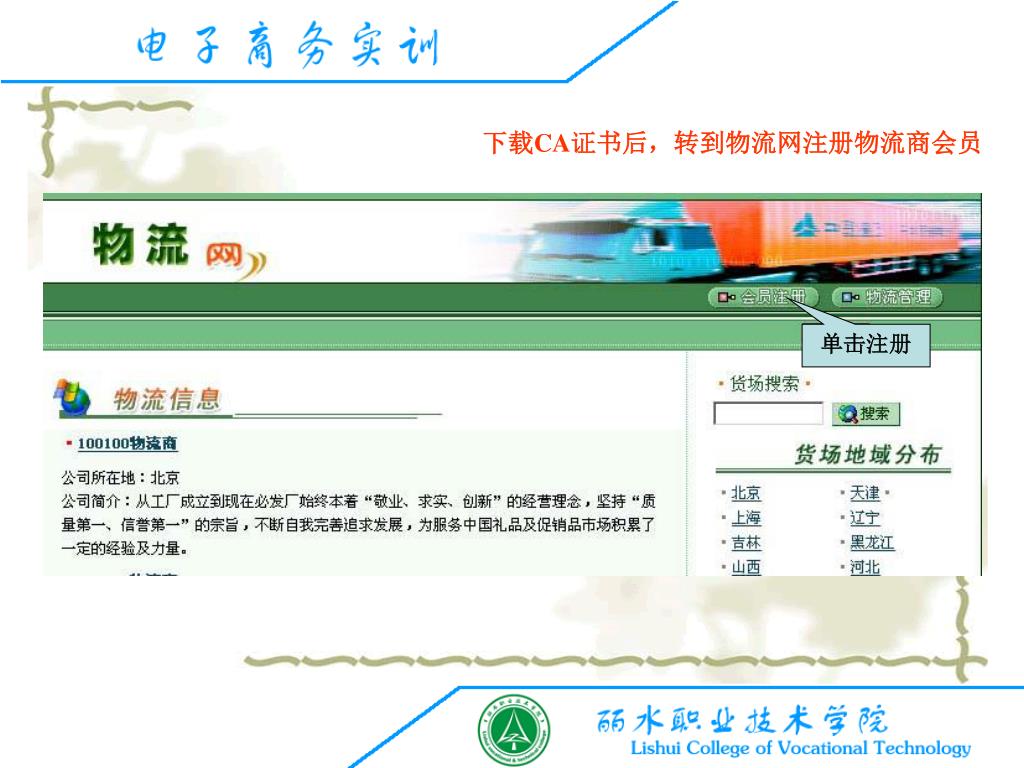 下载CA证书后,转到物流网注册物流商会员 单击注册