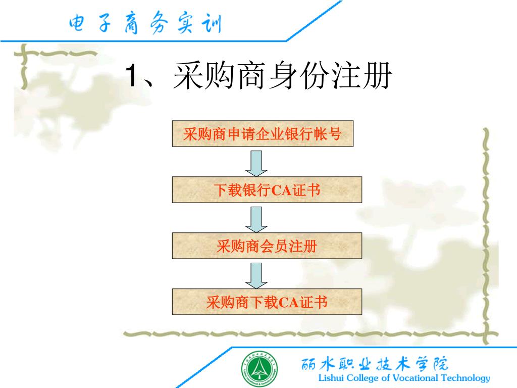 1、采购商身份注册 采购商申请企业银行帐号 下载银行CA证书 采购商会员注册 采购商下载CA证书