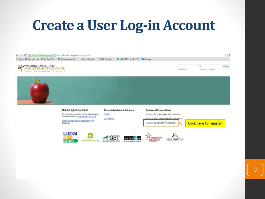 LOAN REPAYMENT SITE APPLICATION Application period is July 1, 2014 through September 12, 2014 Go to: www.wsac.wa.gov/health-professionals