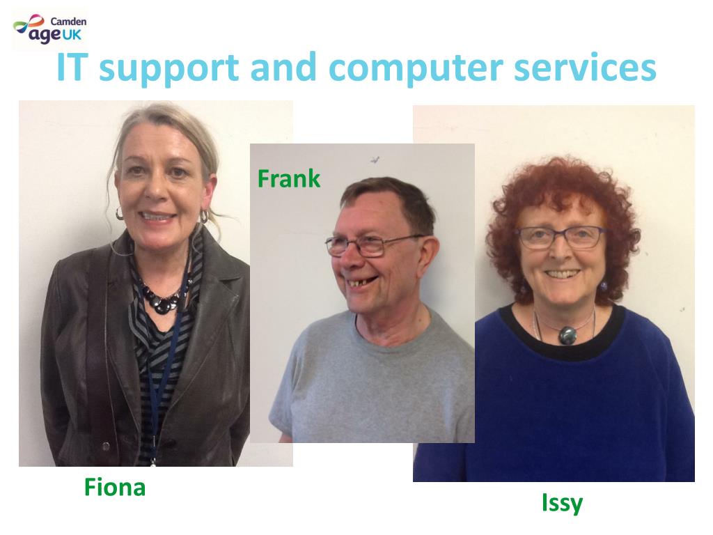 Celebrating the valuable work volunteers are doing for Age UK Camden. IT support and computer services. Hilary. Hilary. Deniz. John and Terry. Henderson Court.