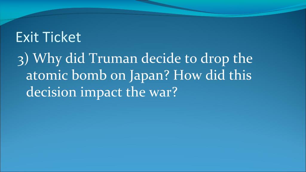 Exit Ticket • 3) Why did Truman decide to drop the atomic bomb on Japan? How did this decision impact the war?