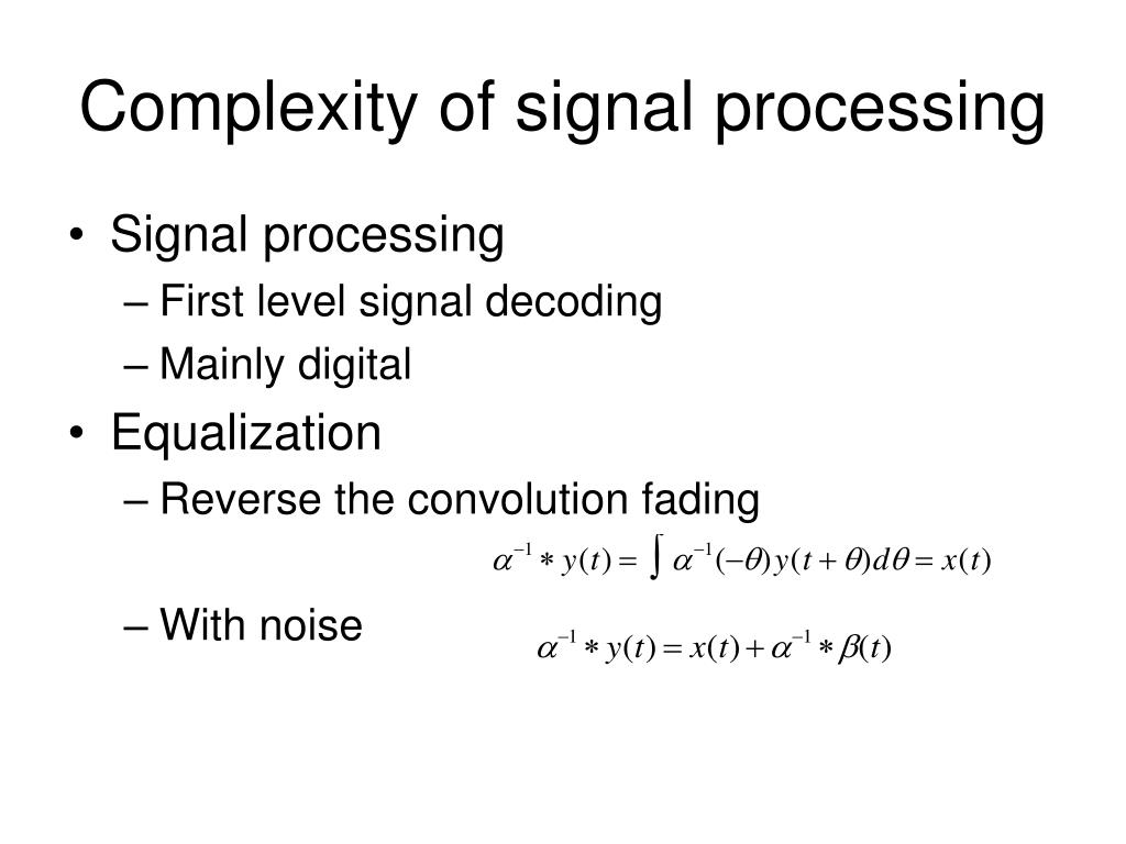 Complexity of signal processing • Signal processing • First level signal decoding • Mainly digital • Equalization • Reverse the convolution fading • With noise