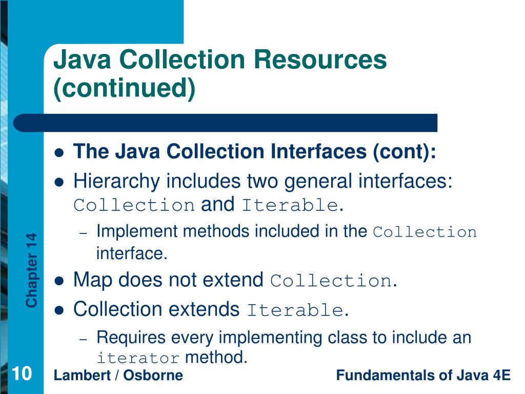 Java Collection Resources (continued) • The Java Collection Interfaces: • The java.util collection interfaces 9 9