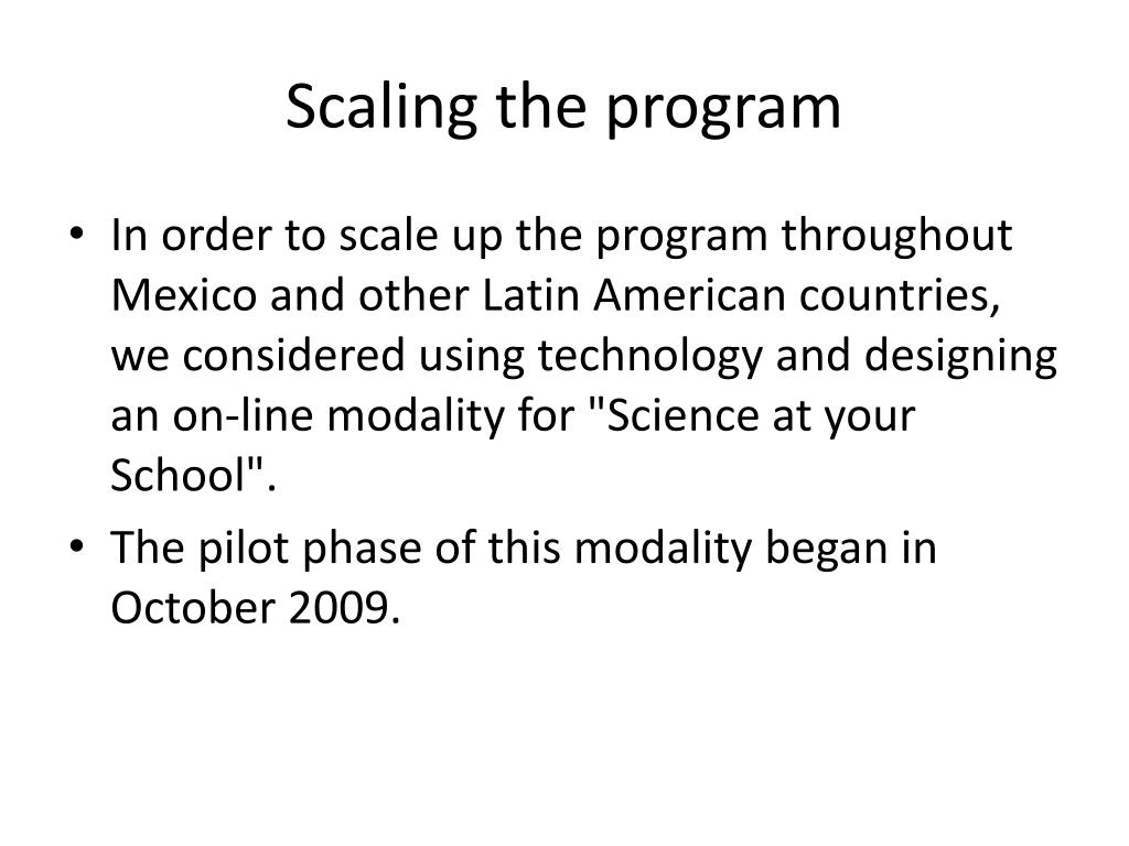Scalingtheprogram • In order to scale up the program throughout Mexico and other Latin American countries, we considered using technology and designing an on-line modality for "Science at your School". • The pilot phase of this modality began in October 2009.