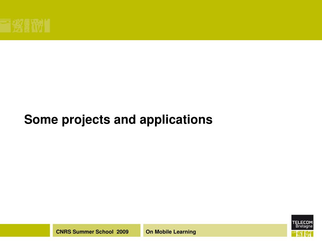 Still a young research domain • Frameworks for the analysis and design of mobile learning have not reached consensus yet • First frameworks are technically oriented • Growing maturity enable the emergence of frameworks taking into account more essential features On Mobile Learning