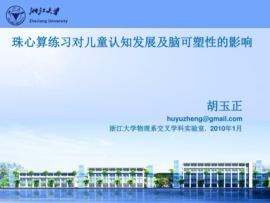 珠心算练习对儿童认知发展及脑可塑性的影响 胡玉正 huyuzheng@gmail.com 浙江大学物理系交叉学科实验室. 2010年1月