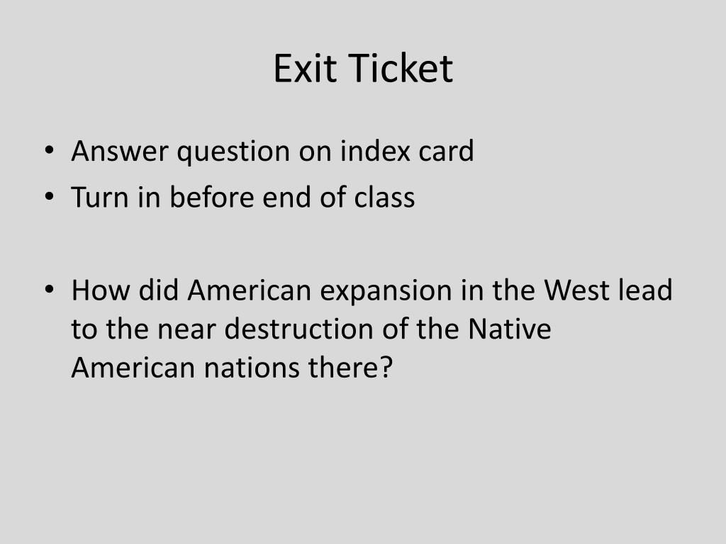 Exit Ticket • Answer question on index card • Turn in before end of class • How did American expansion in the West lead to the near destruction of the Native American nations there?