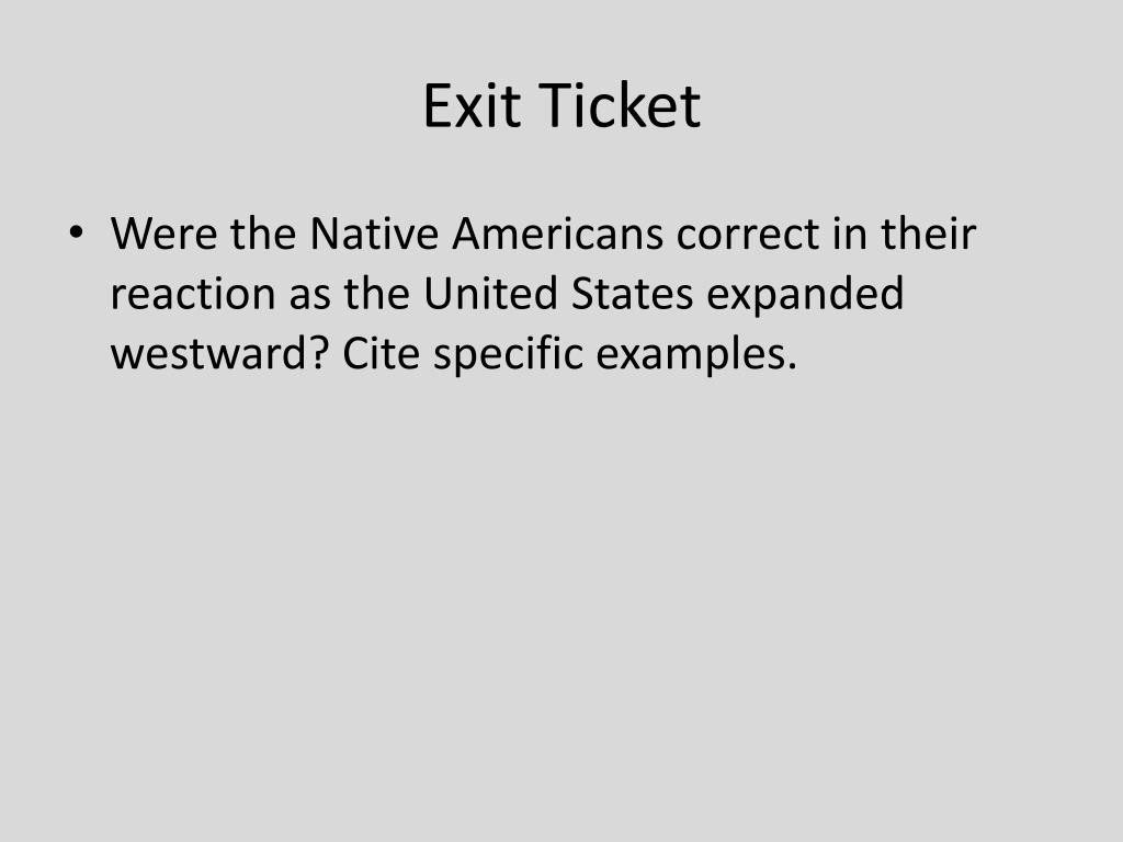 Exit Ticket • Were the Native Americans correct in their reaction as the United States expanded westward? Cite specific examples.