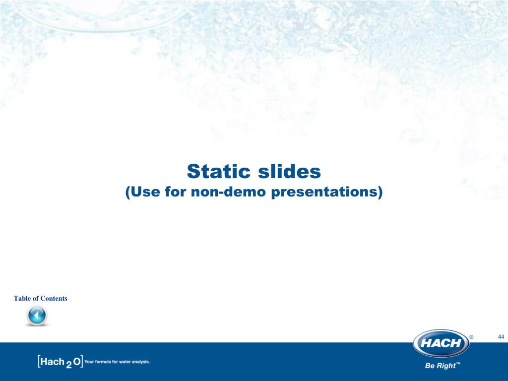 Table of Contents • Product overview • Product demo • Customer testimonials • Static slides (product screen shots) • Case studies
