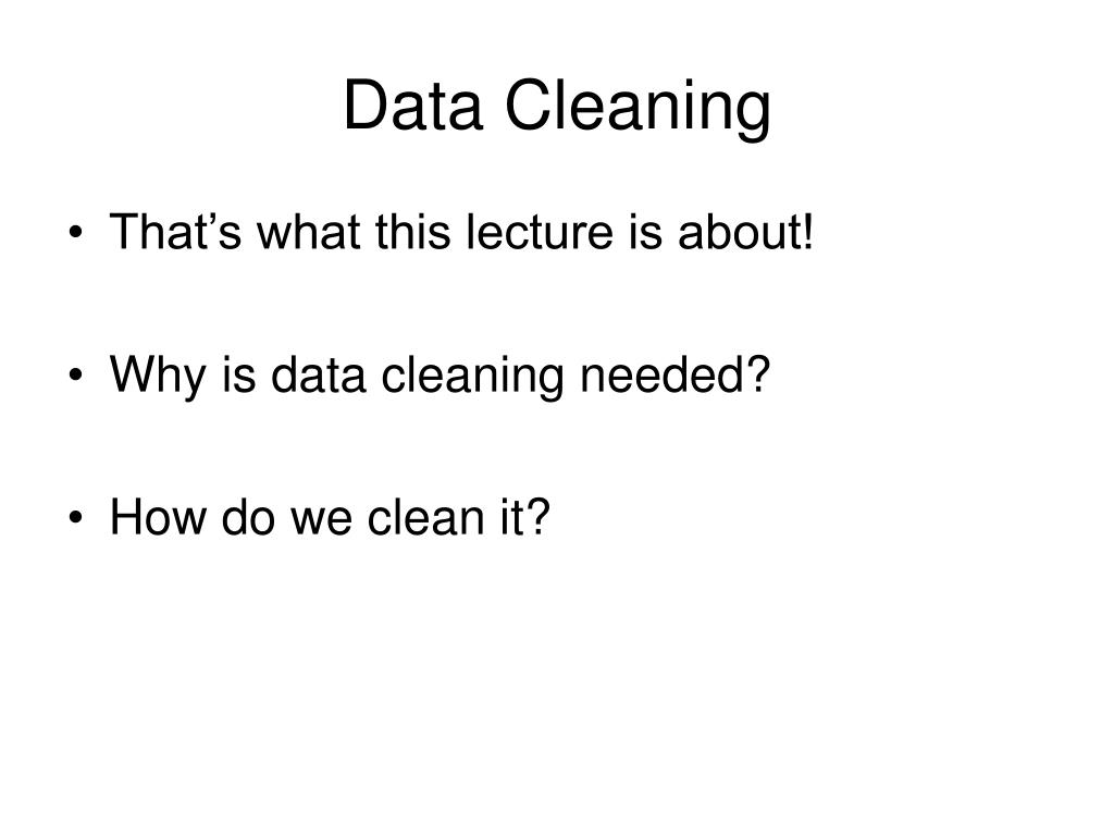 Data Cleaning • That’s what this lecture is about! • Why is data cleaning needed? • How do we clean it?