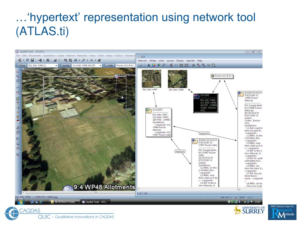 Limitations of CAQDAS mapping tools for visual data representation • Not designed for generating hypertexts • Cannot visualise parts of files • Cannot always view coded textual segments • ATLAS.ti the exception