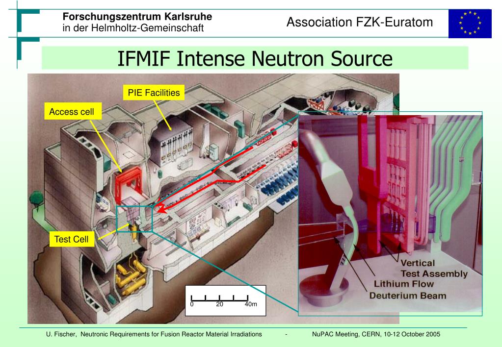 PIE Facilities Access cell Test Cell 0 20 40m IFMIF Intense Neutron Source U. Fischer, Neutronic Requirements for Fusion Reactor Material Irradiations - NuPAC Meeting, CERN, 10-12 October 2005