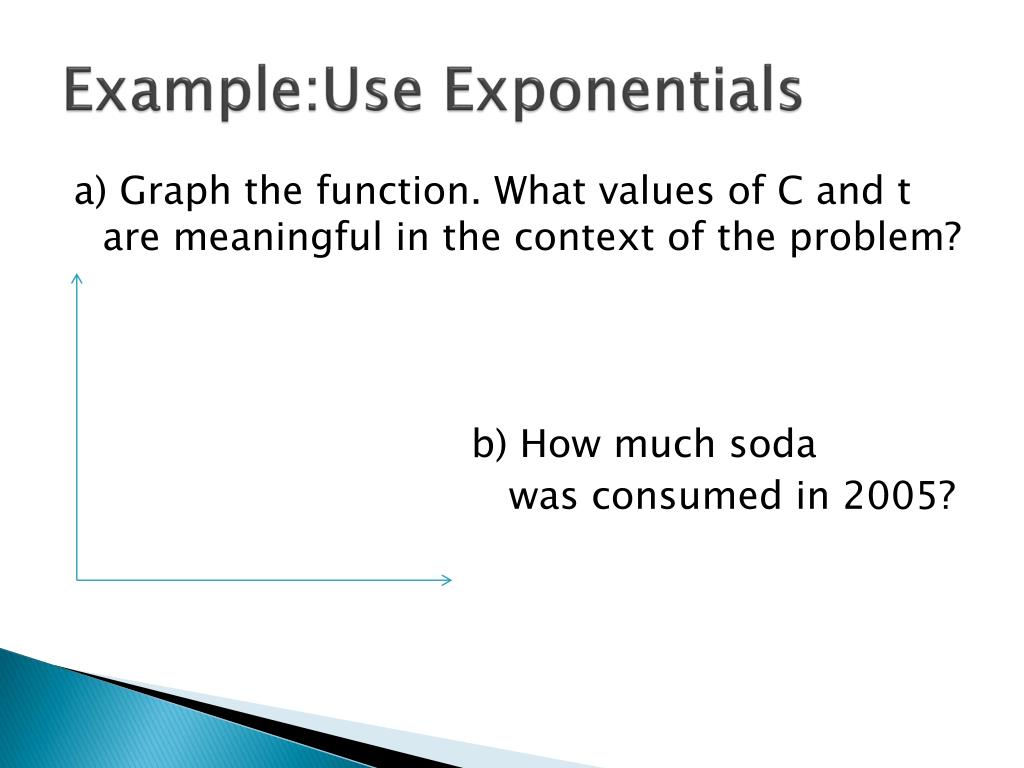Example:UseExponentials a) Graph the function. What values of C and t are meaningful in the context of the problem? b) How much soda was consumed in 2005?
