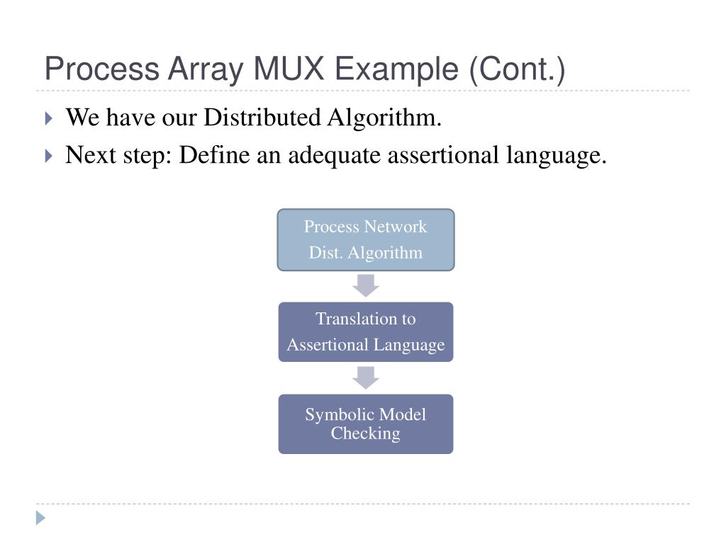 Process Array MUX Example (Cont.) • We have our Distributed Algorithm. • Next step: Define an adequate assertional language.