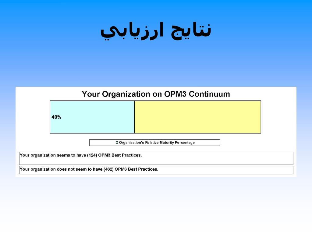 نتايج و پيشنهادات • ايجاد دفتر پروژه • ايجاد زبان مشترك در سازمان • به كارگيري اصول مديريت برنامه و پورتفوليو • تقويت استانداردسازيها با راهنمايي OPM3