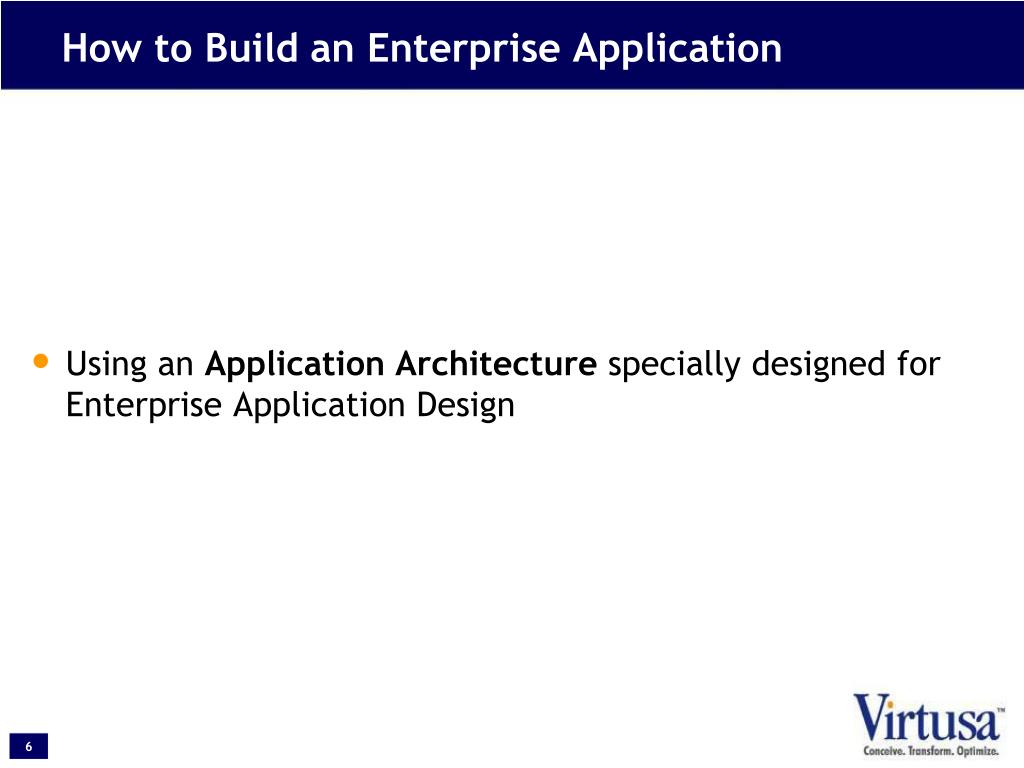 How to Build an Enterprise Application • Using an Application Architecture specially designed for Enterprise Application Design
