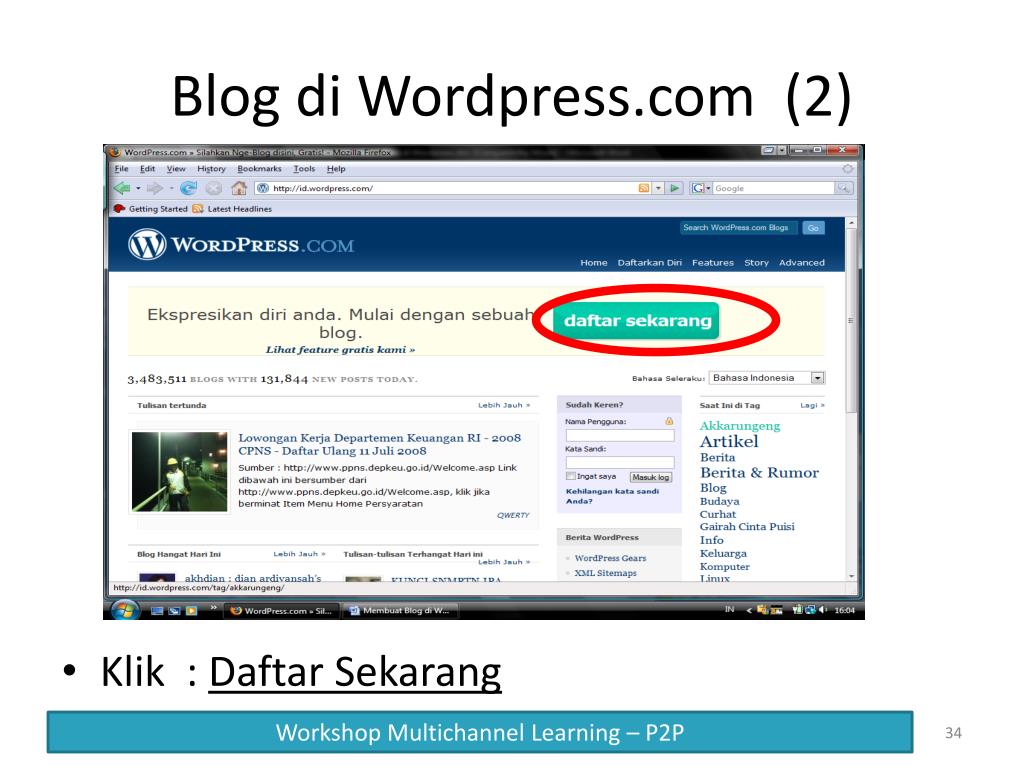 Blog di Wordpress.com (2) Klik : Daftar Sekarang