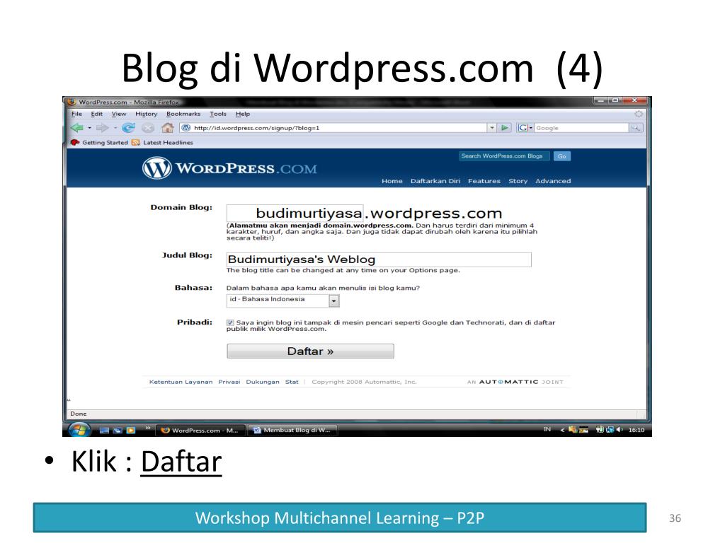 Blog di Wordpress.com (4) Klik : Daftar