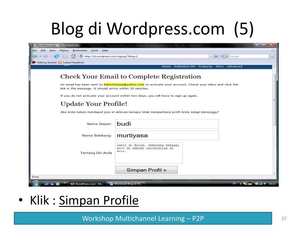 Blog di Wordpress.com (5) Klik : Simpan Profile