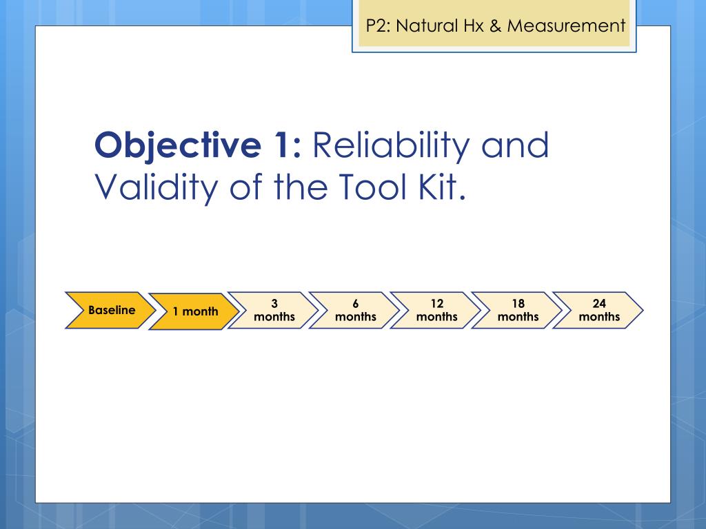 P2: Natural Hx & Measurement Objective 1: Reliability and Validity of the Tool Kit.