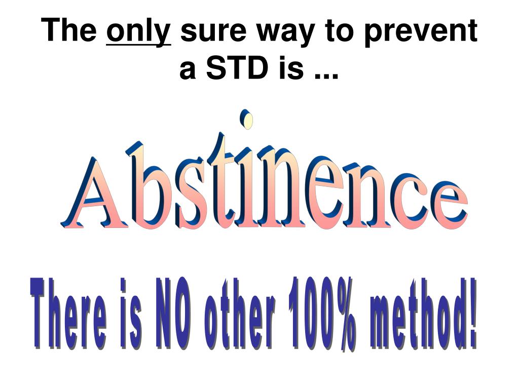 The only sure way to prevent a STD is ... Abstinence There is NO other 100% method!