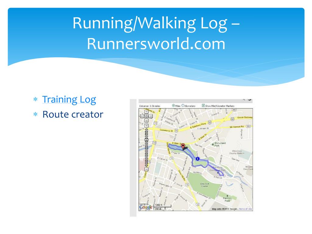 Running/Walking Log – Runnersworld.com Training Log Route creator