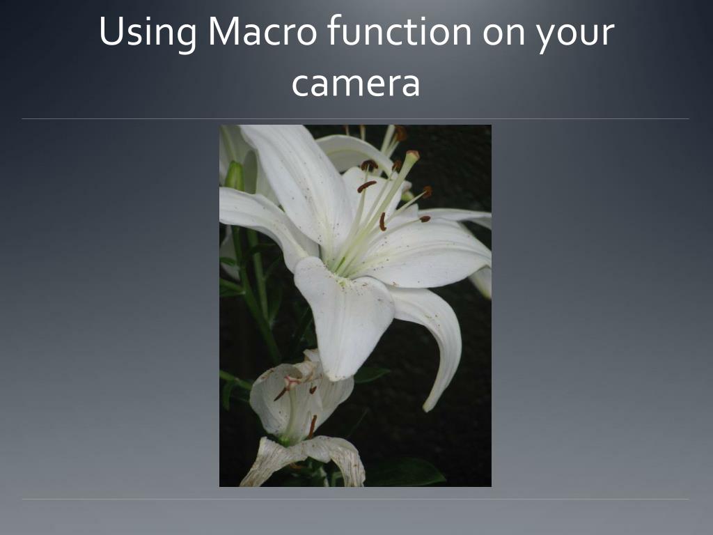 Photographing FLOWERS. Digital Photography I. Gerbera Daisies on an overcast day. Pansies with a dark green background (intentional). Marigold using Rule of Thirds. Water droplets on Marigolds. Water droplets . Pansies in good lighting (not too bright). Using Macro function on your camera.