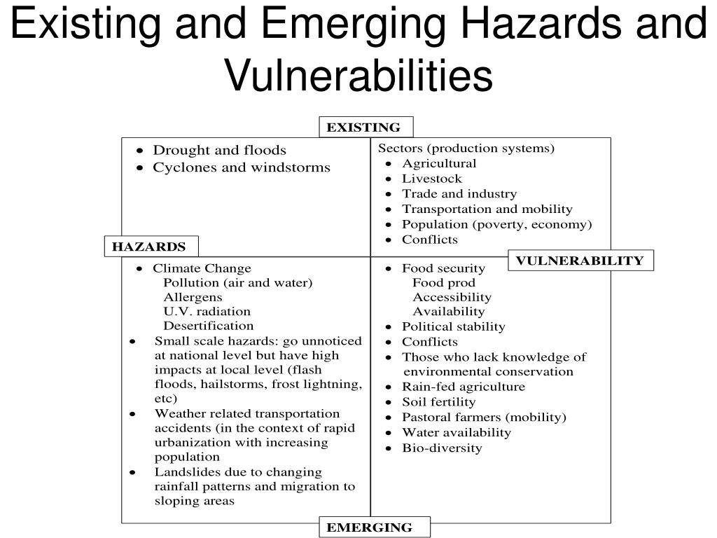 Vulnerable People and Places • People who live on arid or semi-arid lands, in low-lying coastal areas, in water-limited or flood-prone areas • It is… clear that climate change will, in many parts of the world, adversely affect socio-economic sectors, including water resources, agriculture, forestry, fisheries and human settlements, ecological systems …, and human health …, with developing countries being the most vulnerable. (IPCC 2000a) • Developing countries… have lesser capacity to adapt and are more vulnerable to climate change damages, just as they are to other stresses. This condition is most extreme among the poorest people. (IPCC 2001: 8)