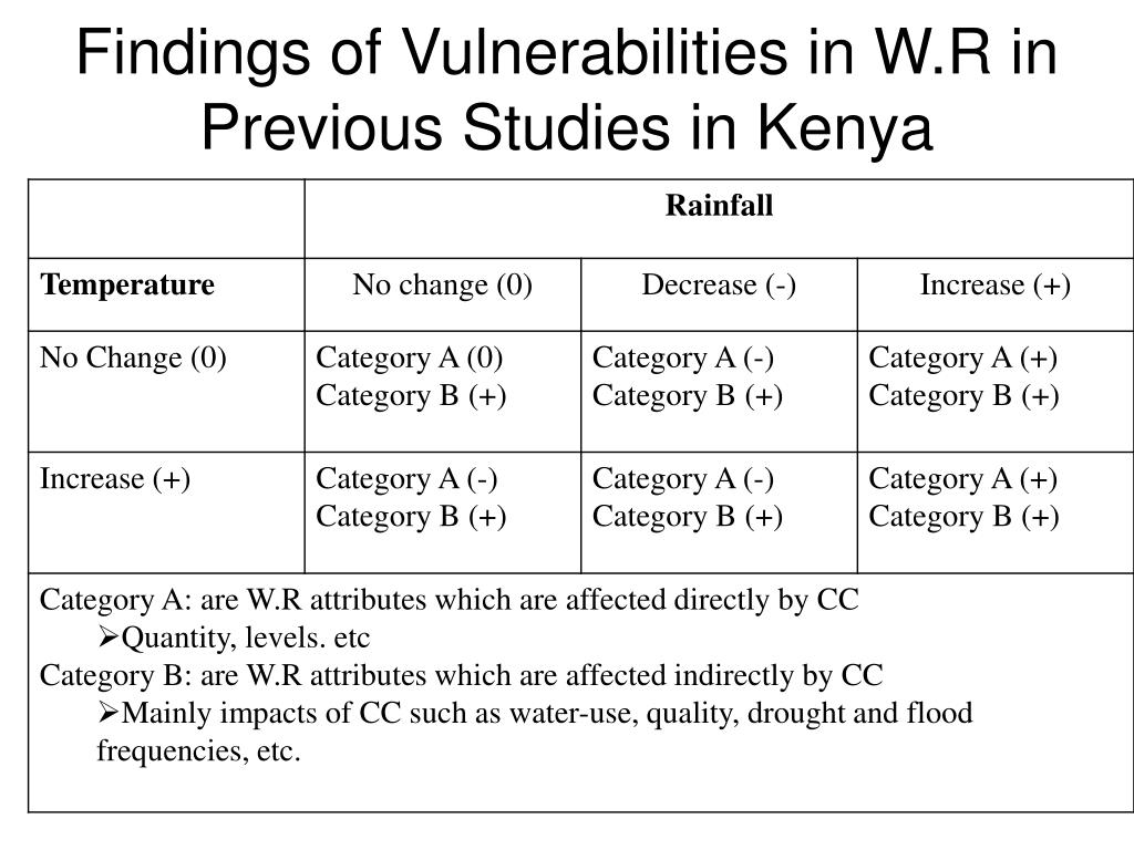 Findings of Vulnerabilities in W.R in Previous Studies in Kenya