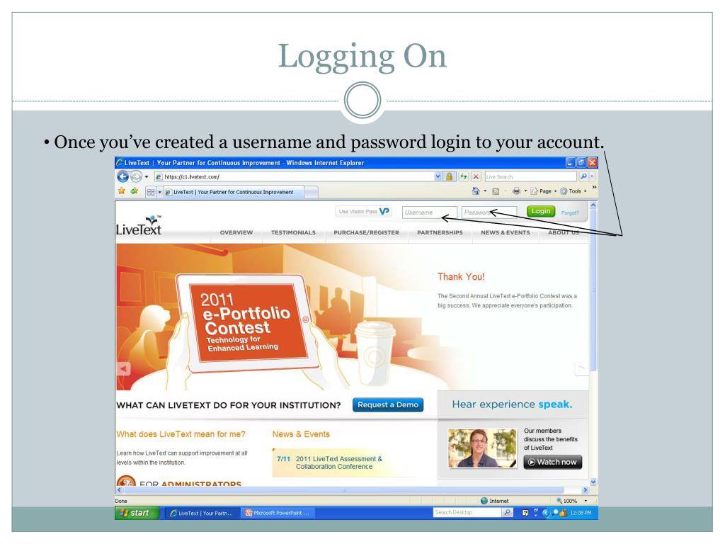 Logging On • Once you’ve created a username and password login to your account.