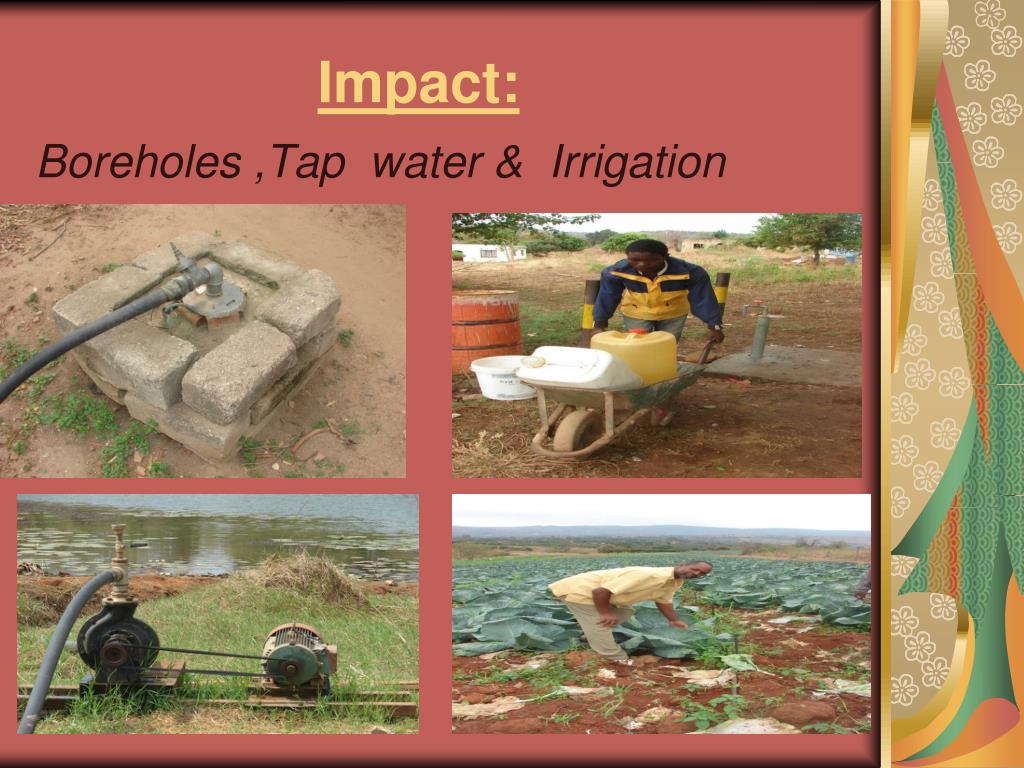 8. 2009 Sustainability • Formal education to learners. • Educating the community informally (churches, youth gatherings, tribal meetings ) • Inviting working for water people to workshop & train the community on control and safety measures.