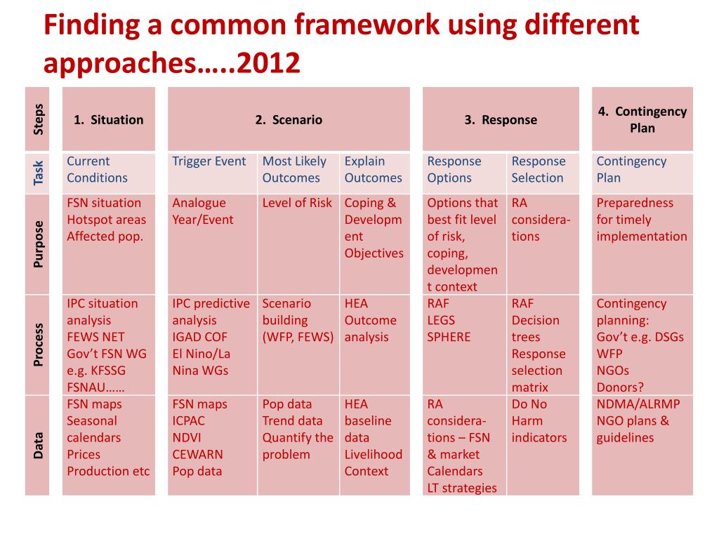 Finding a common framework using different approaches…..2012