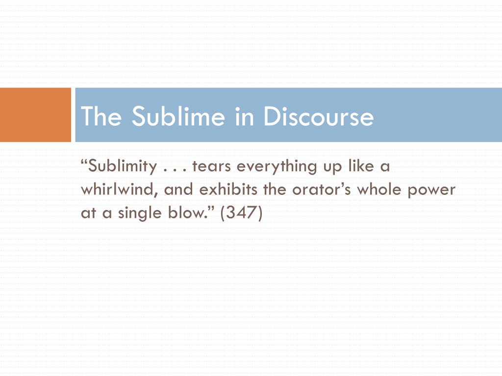 ENGL / Comm 4103 Rhetoric & Persuasion. Longinus: On the Sublime. The Sublime in Discourse. “Sublimity . . . tears everything up like a whirlwind, and exhibits the orator’s whole power at a single blow. ” (347). The Sublime: A Study in Style. What is the Sublime? General Principles: