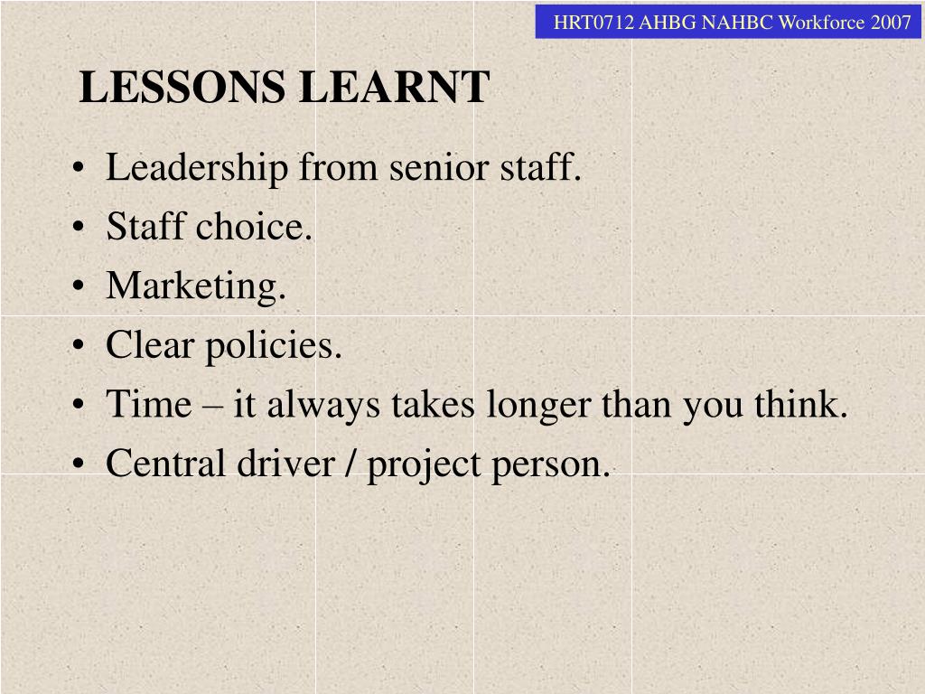 LESSONS LEARNT • Leadership from senior staff. • Staff choice. • Marketing. • Clear policies. • Time – it always takes longer than you think. • Central driver / project person.