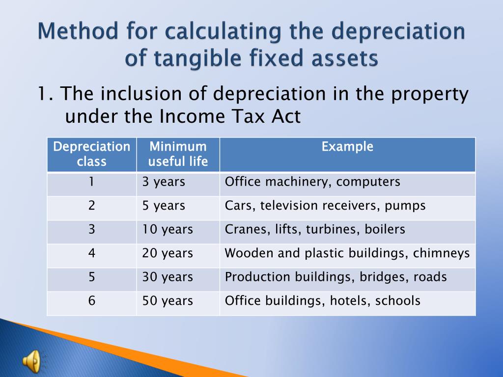 Method for calculating the depreciation of tangible fixed assets 1. The inclusion of depreciation in the property under the Income Tax Act