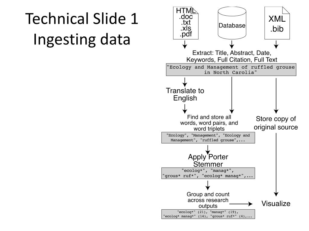 Status • March-April 2013 • Collected and indexed LTER research outputs • Developed research database (bibliographic info + abstracts) • May-June 2013 • First cut at data • Identified major themes by external frameworks • July-September 2013 • Outlined potential internal and external briefs