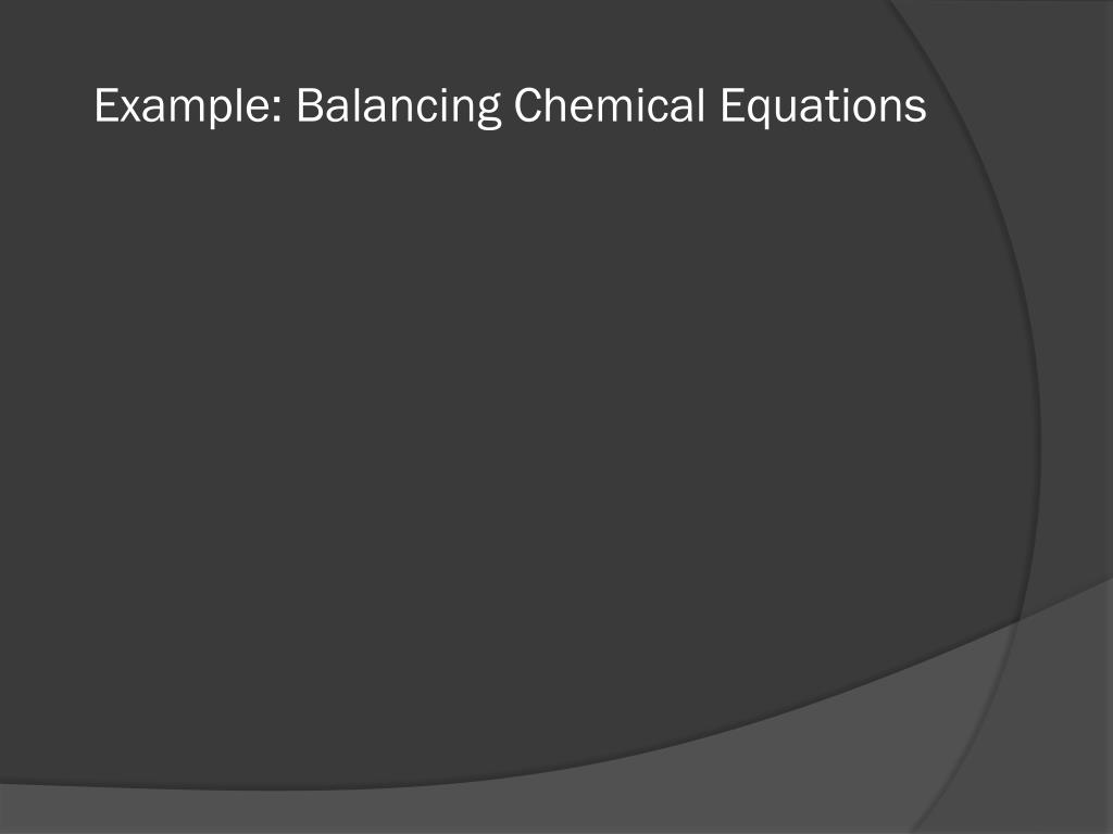 Balancing Chemical Equations • Recall that matter is neither created nor destroyed in a chemical reaction. • In order to follow the law of conservation of matter we must balance our chemical equations so that the reactant and product sides are equal to one another.