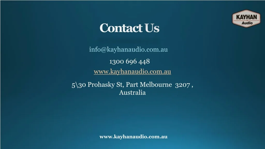 1300 696 448 www.kayhanaudio.com.au 5\30 Prohasky St, Part Melbourne 3207 , Australia info@kayhanaudio.com.au Contact Us www.kayhanaudio.com.au